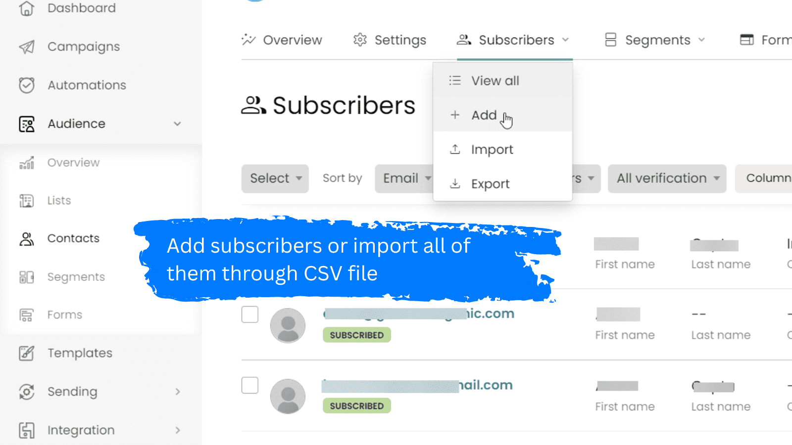 Manage your contact list and verify your emails